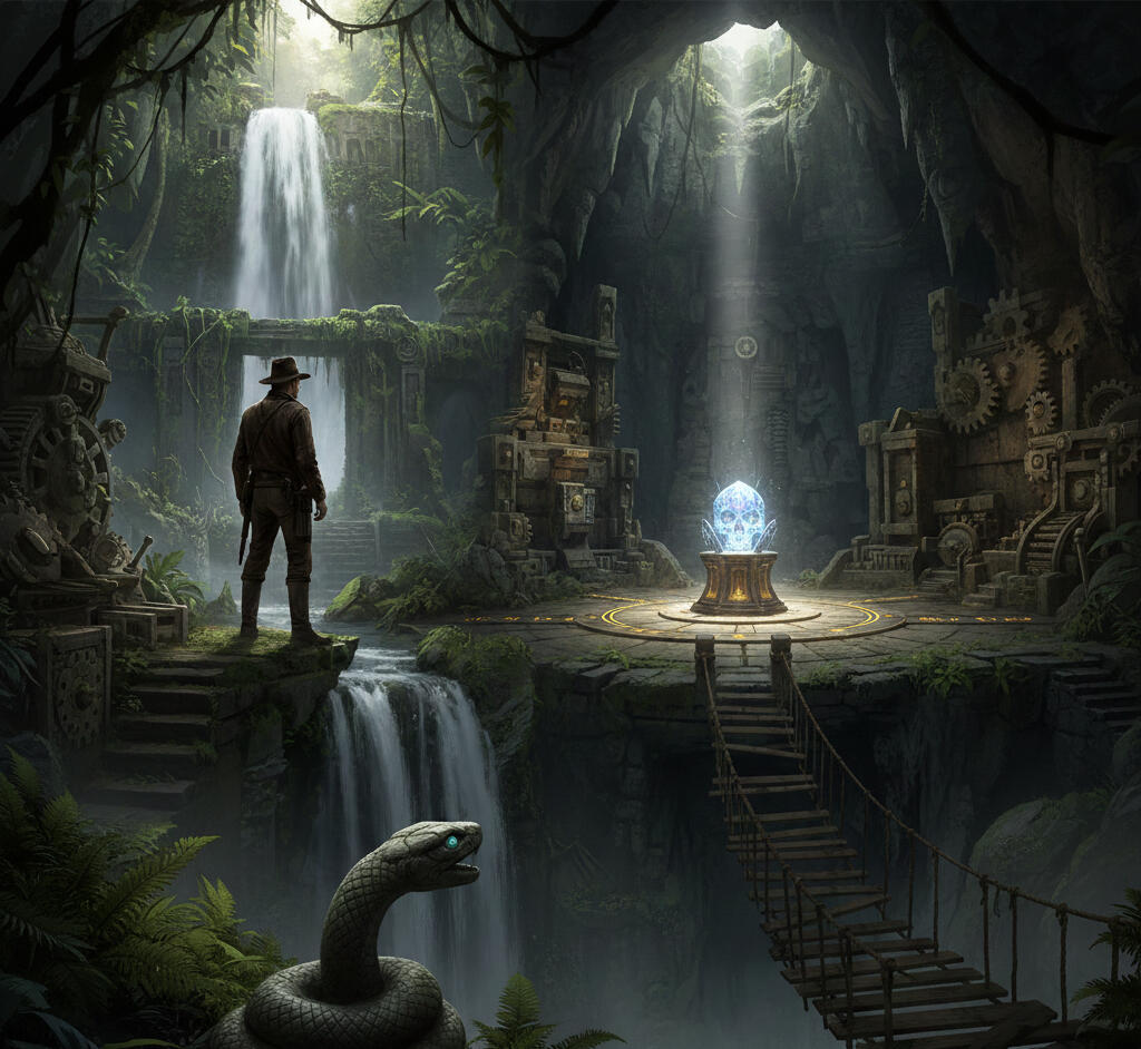 Dincolo de o cascada ascunsa in jungla sarpelui etern se afla o grota uitata de secole, unde legendele vorbesc despre artefacte capabile sa trezeasca puteri antice. Misterul atrage, pericolul pandeste, iar fiecare pas te duce mai adanc in necunoscut.